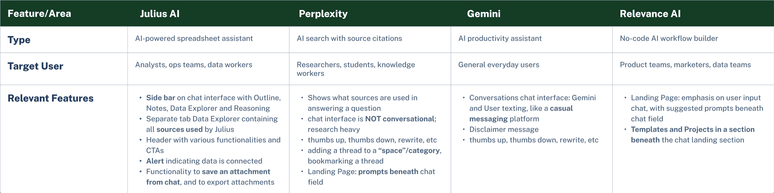 These insights directly informed design priorities: clarity between exploration types, streamlined chat-based workflows, and enhanced organization and recall of insights.